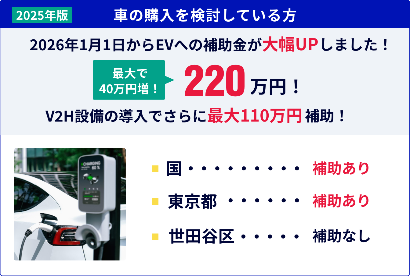 国・東京都それぞれの補助制度を活用することで、オトクに購入しましょう!